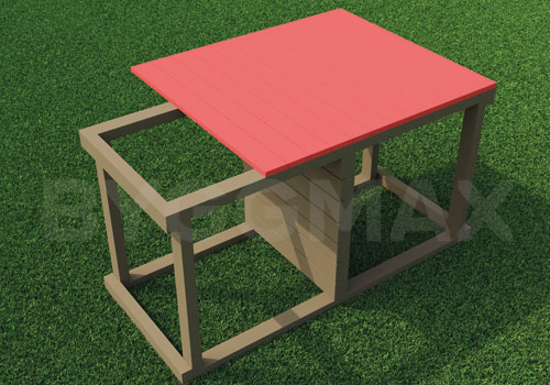 Kapp til 22 x 95 mm terrassebord til samme lengde som bena. Fest disse som en mellomvegg mellom de midterste bjelkene i over- respektive underrammen. Fest bordene med to 4,2 x 42 mm terrasseskruer i hver ende. Husk å kontrollere at alle vinkler er rette før du fester bordene for mellomveggen da disse kommer til å låse hele konstruksjonen.