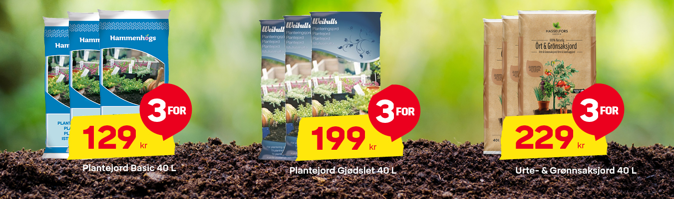 Vi har plantejord av høy kvalitet til svært gode priser. Hos oss finner du også pallekarmer, potter og alt annet du trenger til planting.