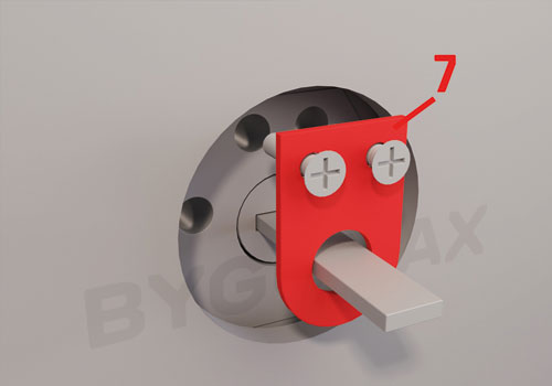 Sylinderkapper (6) finnes med ulike dybde og må tilpasses dørens tykkelse og låsesylinderens (5) dybde. For en 7-stift låsesylinder kan du finne sylinderkappens dybde ved å ta 31 mm (låsesylinderens dybde) minus målet fra låskassen og ut til dørbladet. 7-stift låsesylinderen er den absolutt vanligste varianten og kan enkelt identifiseres ved nøkkelens syv daler.