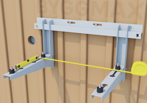 Veggstativet fester du på et passende sted der du kan få godt feste i veggen, gjerne i bjelkene. Bruk skruer som passer til materialet i veggen og skru opp skinnen. Den har ofte et innebygget vater som gjør det enklere å få den rett, ellers bruker du et vanlig vater.